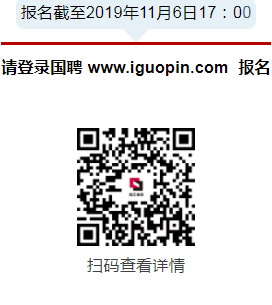 本次招聘報名開始時間為2019年10月28日8:30,截止時間為2019年11月6日17:00,逾期不再接受報名。